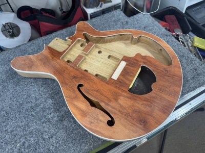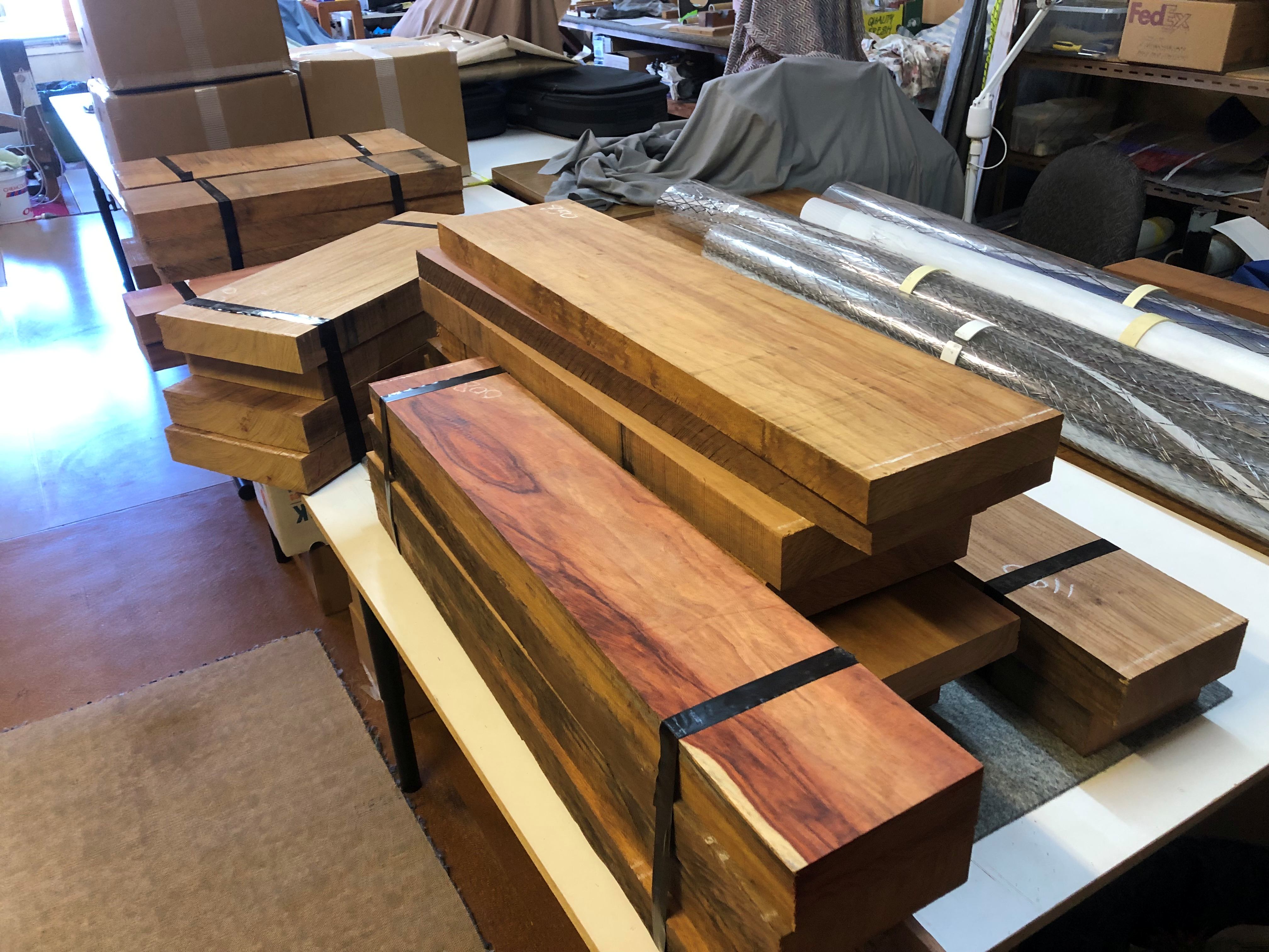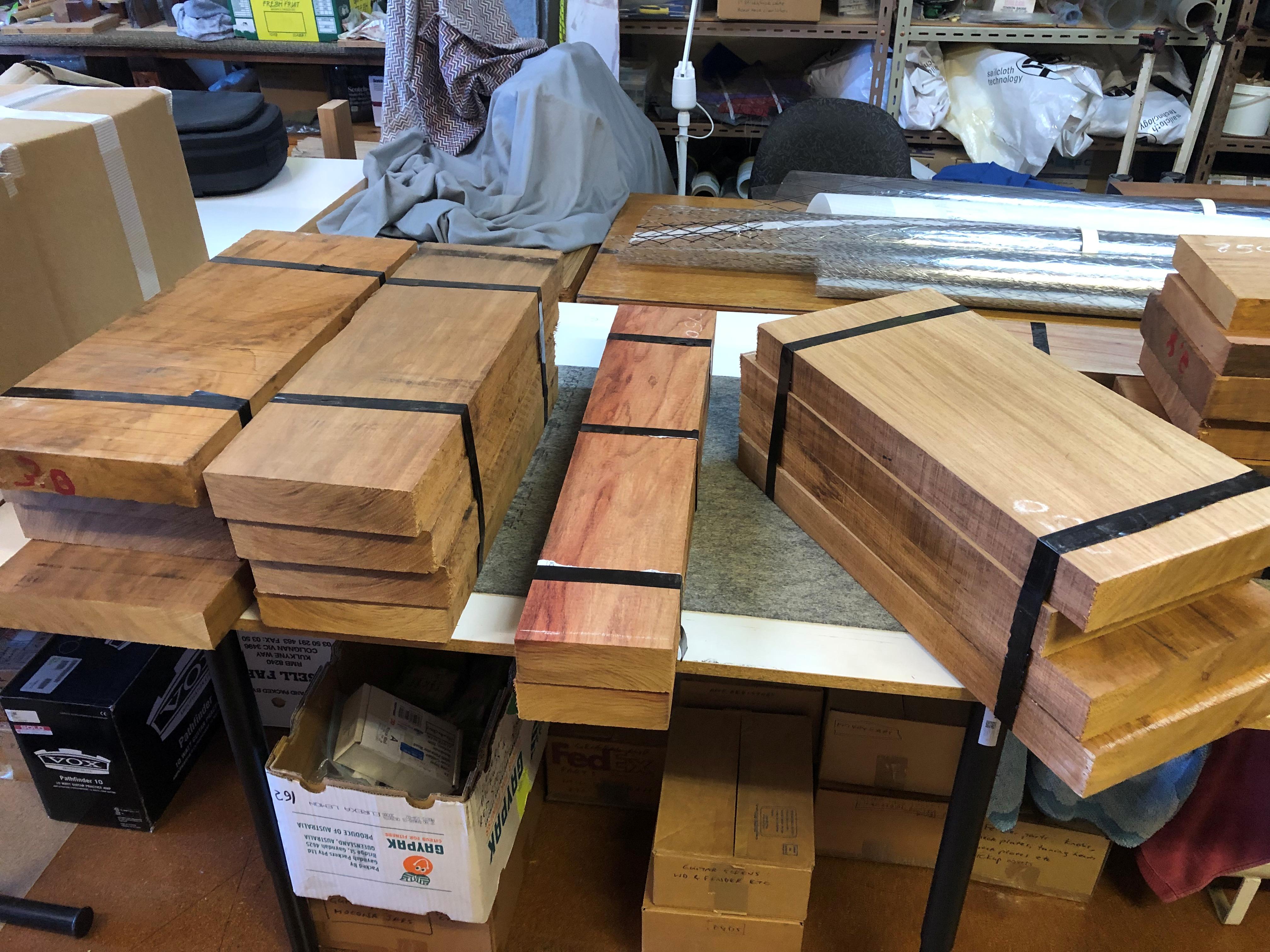 The guitar below is being made from New Guinea Rosewood, and is using some of the New Guinea Rosewood veneer and solid New Guinea Rosewood timber that Kazutaka, Daizo Tokuda and I selected in Sydney during their visit in June this year 😊