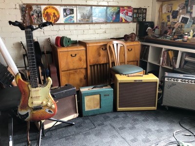 “Today I had the privilege and pleasure of putting the two Fryer/Kz Astronaut guitars through my 1959 Gibson GA6 amp which some years ago was modified by legendary Sydney amp tech Martin Kell to classic Fender 5E3 Tweed Deluxe specs. The amp has two 6V6 power valves, a GZ34 rectifier valve, plus a great sounding 12” Eminence Allesandro GA-SC64 speaker.