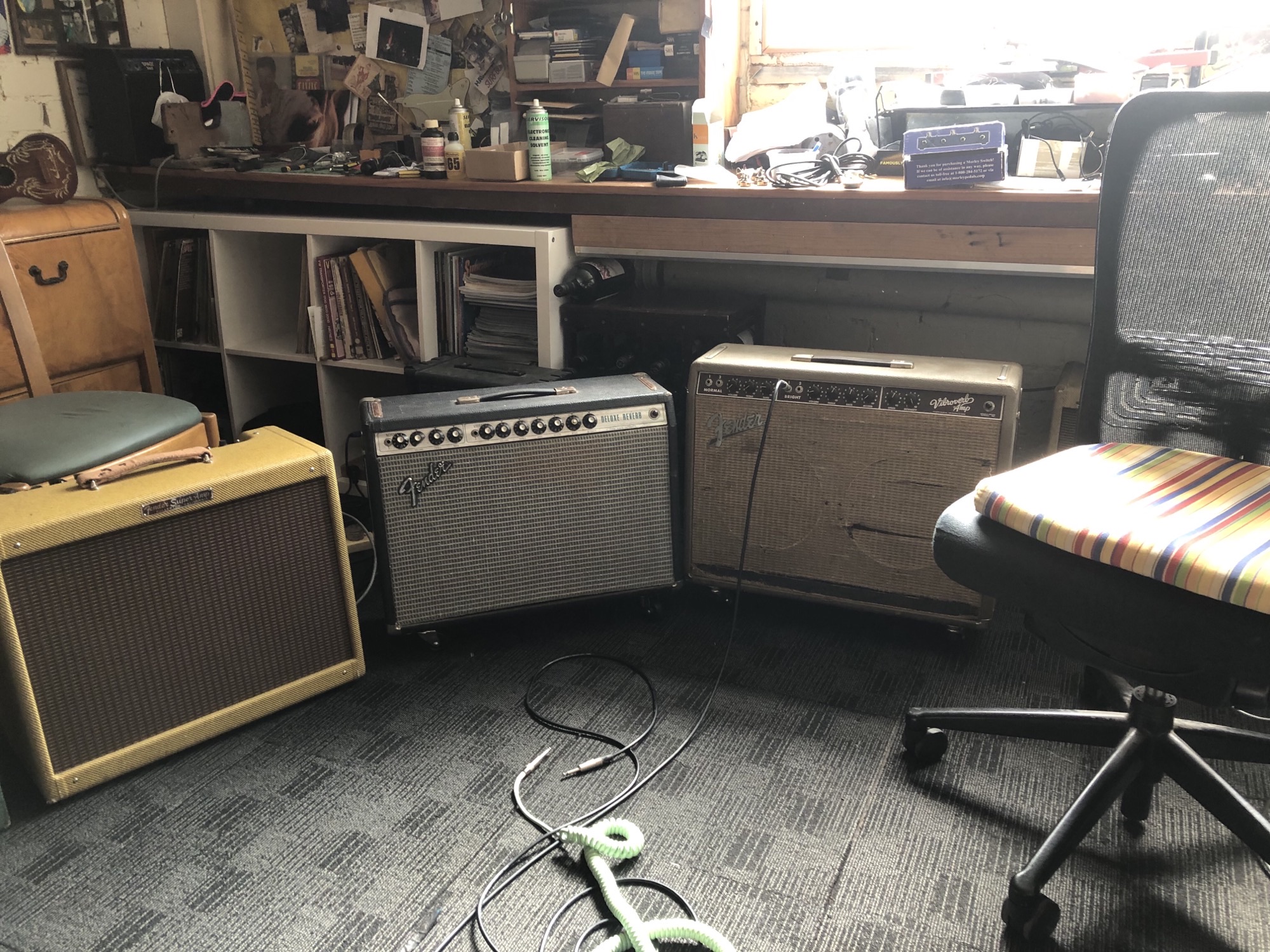 We made a number of videos using my GoPro Hero 7 Black action camera, and chatted away for a couple of hours comparing Milton’s Strat with the Astronaut guitars and using his pedals played through two of the amps: a 1959 Gibson modified to classic Fender Tweed 5E3 Deluxe specs, and a Fender Vibroverb.