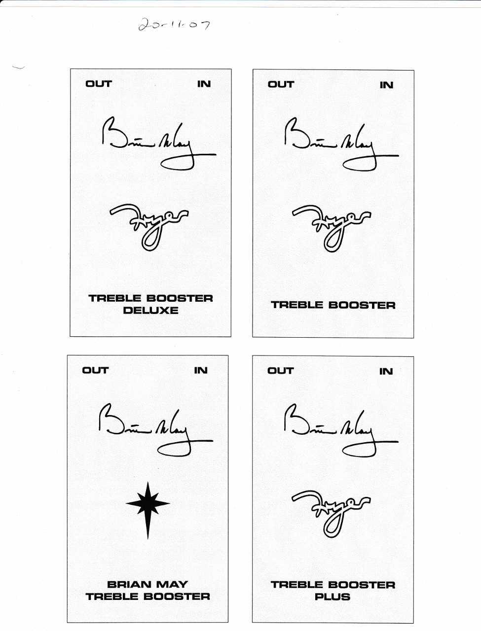 Scanned jpeg of proofsheet artwork done by Greg Fryer and Hourie Sarkissan on 20th Nov 2007 for several Brian May/Fryer treble boosters #1