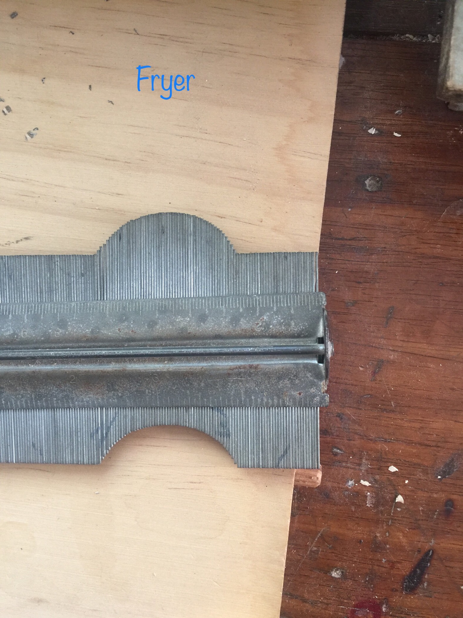 Ian said he liked the extra width of the fingerboard on the 1989 white Fryer guitar, and we decided to make the replacement neck fingerboard almost as wide as the white guitar and use the same 11 3/16″ radius fingerboard curve of Frogs Legs 103 neck. The 1989 white guitar’s neck had also been made to this same radius that Ian liked. The 11 3/16″ radius is much flatter than the standard Fender 7.25″ radius. It gives a different feel to the guitar and makes the thinner strings G, B and top E sustain longer when the strings are bent compared to playing a standard 7.25″ radius neck.