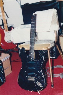 However in Richard’s photos dated 5 February 1983, at side of stage we can see the 1960 Strat® neck and black body on a guitar stand. The guitar has standard Fender® style single coil pickups fitted in the standard right handed scratchplate.
