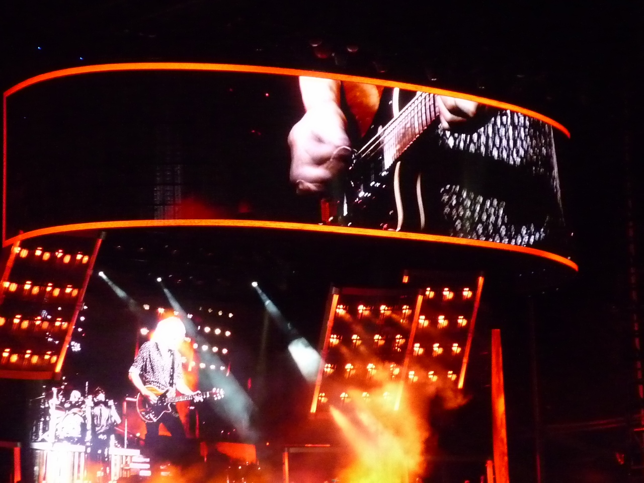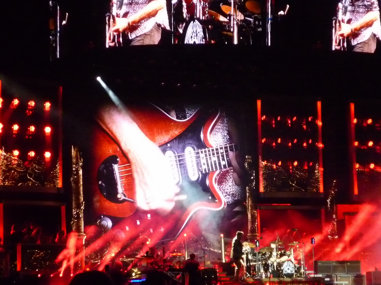 And what was personally awesome for me was seeing Brian May play my guitar ‘George Burns’ on the Queen hit Fat Bottomed Girls. I made this guitar for Brian back in 1996-97 and used some strikingly beautiful New Guinea Rosewood for the neck and body, and used the rare Brazilian Rosewood for the fingerboard. Photo below is from Brian Reynolds – thanks! Cheers, Greg Fryer