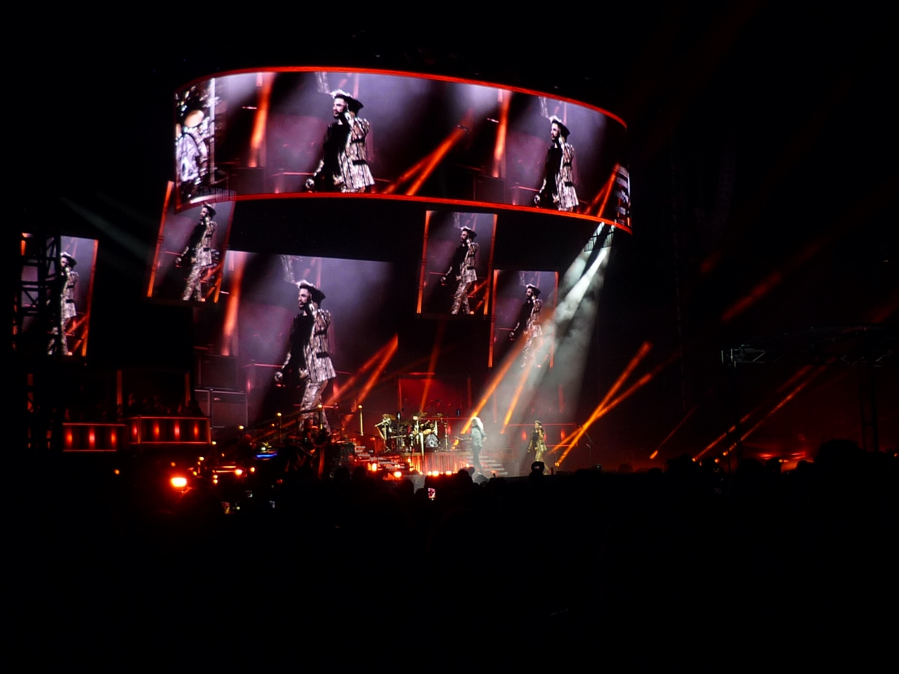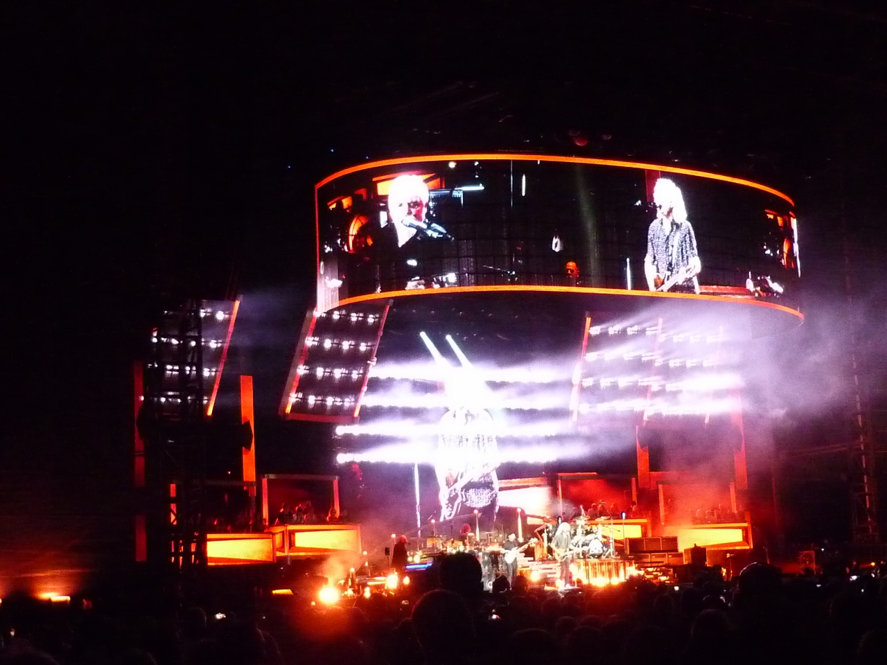 On Saturday night 15th February I attended the Sydney concert. A severe storm swept though Sydney half an hour before showtime and the concert organisers wisely delayed the concert start by approx 3/4 hour. My sister Penny and I got drenched with rain standing outside waiting to get into the venue, but fortunately for everyone the rain cleared just before kick-off and what followed was a stunningly impressive performance from Brian May, Roger Taylor, Adam Lambert and the band. It was an awesome show! ![]()