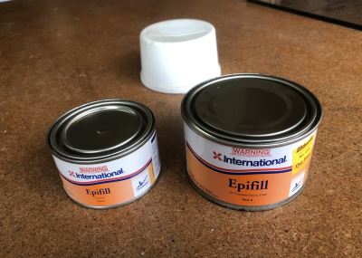 Back at the Allerton Hill workshop the dots and ‘stripe dots’ then were filled with the Australian made Epiglass white epoxy resin filler. This was the same that I used for the side dots and stripe dots of John, Paul and George Burns. I had previously used the epoxy resin filler on my custom Strats® for fingerboard dots (coloured with a cream pigment to look like the early 1960s Fender® clay dots), and used also on boats which the marine epoxy product was originally designed for. The following day after the white epoxy mix was dry I then carefully filed and sanded down the epoxy so it was flush with the surface, avoiding sanding through the surrounding thin black fingerboard paint.