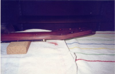 Later at Mark Reynolds step father Paul’s spray painting booth at Leicester, the neck was overcoated with Rustins Plastic Coating.