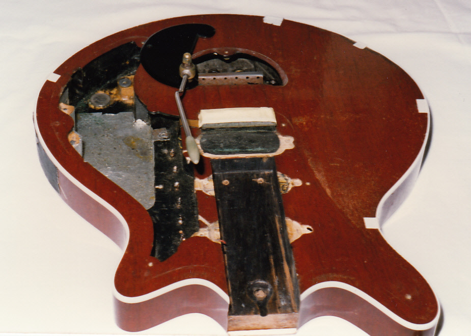 As the project began and we discussed the general approach to the repairs that were needed, Brian’s confidence grew in what should be tackled (and probably also in me, still a relatively unknown quantity) and he began to add items to the repair list. Some of these were scary and difficult and most required materials and techniques that I had not previously encountered in conventional guitar repair or the building/repairing of Gibson and Fender style guitars. Fortunately we began to build up a team of specialists from different areas such as paints, glues, plastics, metal machining etc who we could draw on for advice or to make specialist parts where needed.