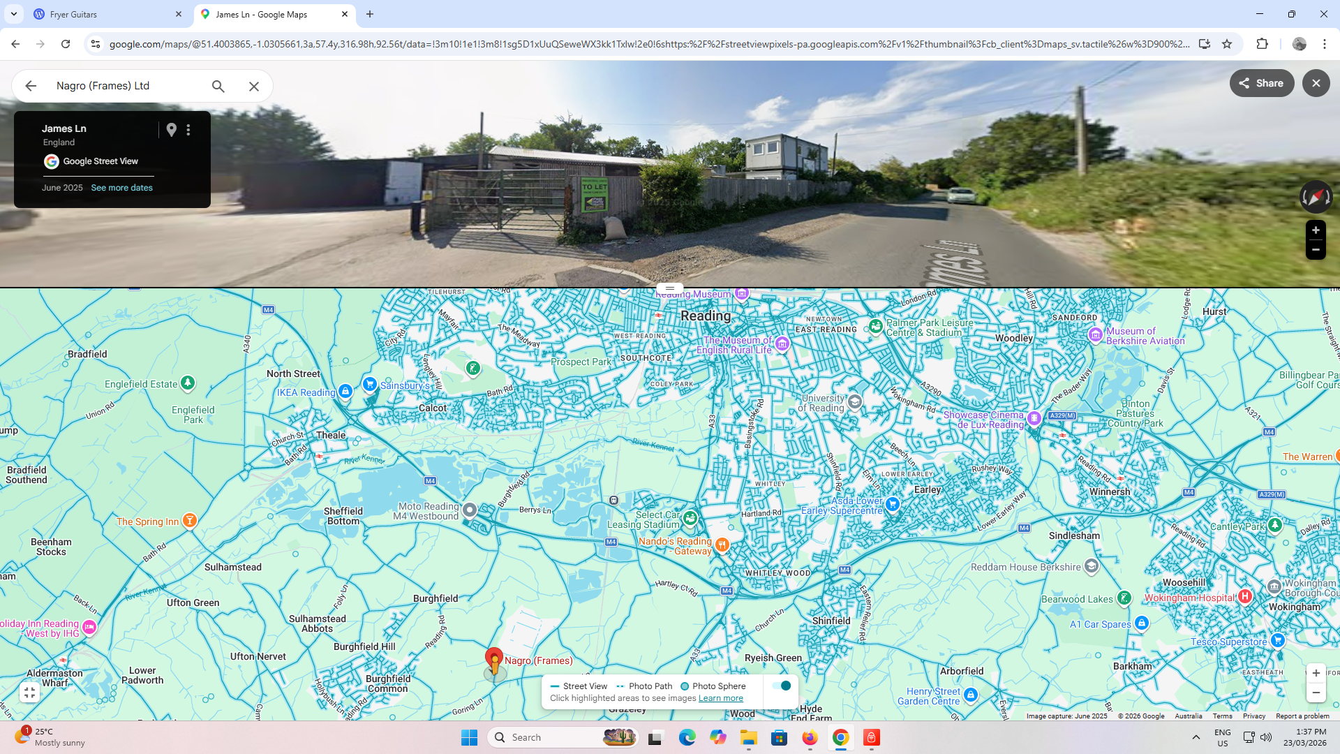 260323 screenshot of Nagro Frames at James Lane Reading where I did the milling work to Brian’s guitar neck