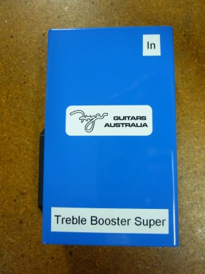 The Fryer Treble Booster Super is handmade in blaze blue colour by Greg Fryer and Shaun Klinger. Available in stock for immediate shipping.